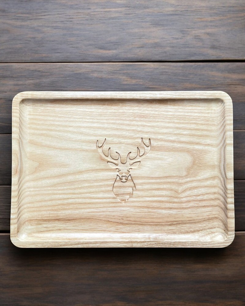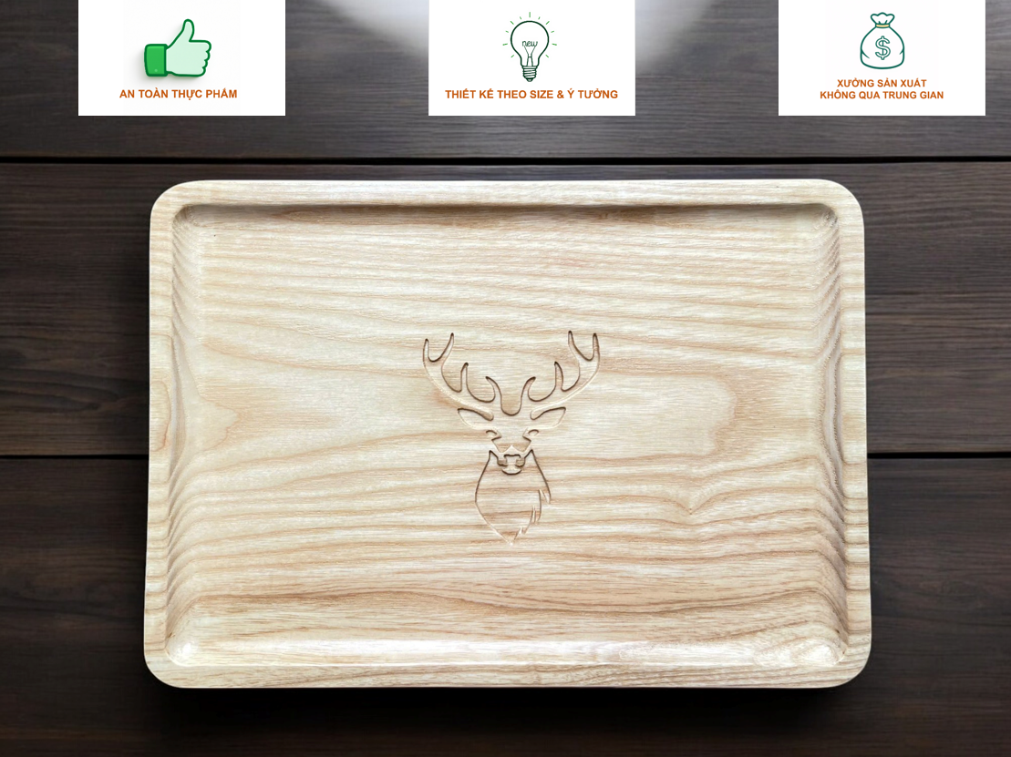 Đặt mua Khay gỗ chữ nhật cao cấp hình hươu